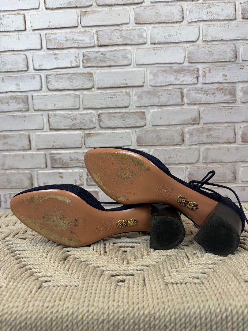 Aquazzura Firenze Suede Tassel Heels, Navy, 39.5, Used - Good