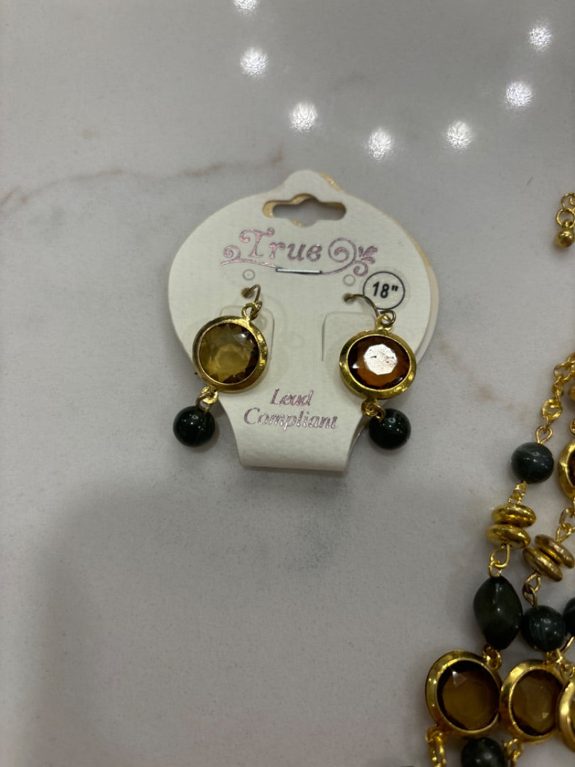 Gold/green Various Earrings, One Size